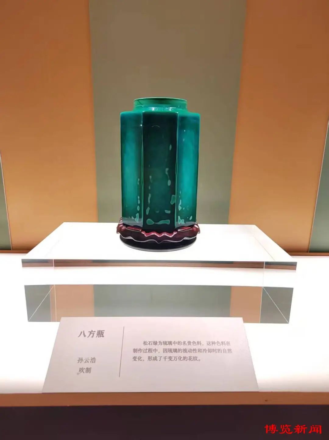 据悉,孙云浩自幼跟随中国琉璃艺术大师、父亲孙即杰学习琉璃历史文化与传统烧制技艺,掌握了琉璃热成型工艺的核心技术。他在传承中不断创新,先后在多个国家级工艺美术博览会上斩获金奖,其代表作《岱青海蓝》《松石绿八方瓶》《和合共生》等,不仅展现了淄博琉璃的艺术魅力,更被多家博物馆收藏,登上国际舞台。