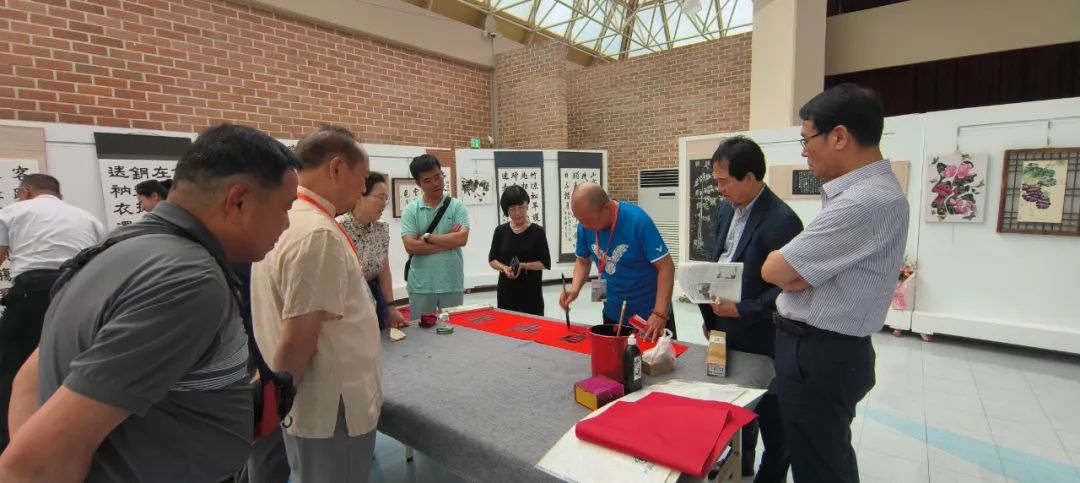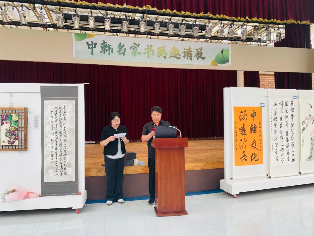 6月23日开幕式上,韩方代表李敏官、玄星允致辞欢迎;中方团长姜长胜追溯中韩“书画同源”的文化血脉,强调文化互鉴的重要性,期盼深化合作、友谊长青。现场举行了礼品互赠仪式,张淑红赠送的中国儿童书法作品、张翠玲的手绘团扇等礼物,以真挚寓意获韩方盛赞,彰显“礼尚往来”的东方礼仪。