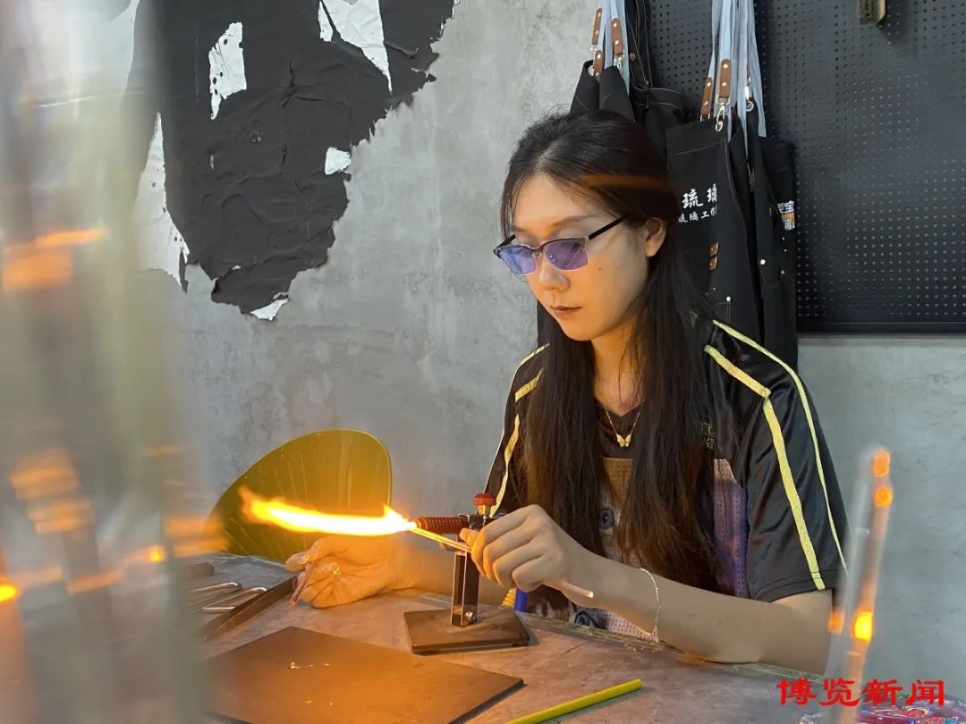 采访结束时,刘媛又一头钻进了创作世界。她手持琉璃棒,在喷灯火焰间灵巧旋动。五彩琉璃在高温下化作液态,随着她指尖的翻转,渐渐凝成花鸟鱼虫的精美造型。