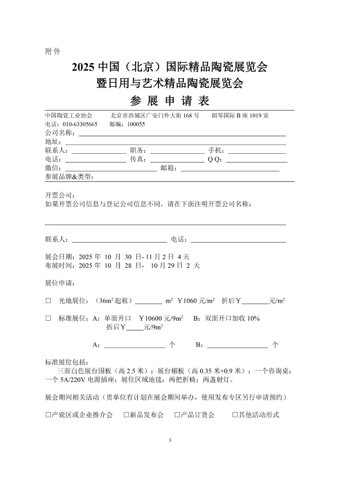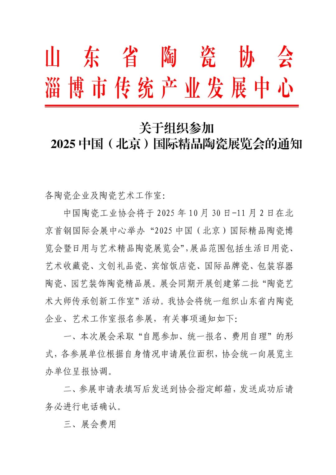 关于组织参加2025中国(北京)国际精品陶瓷展览会的通知